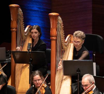 Recording highlights include film scores such as Peter Jackson's The Lord of the Rings and The Hobbit, as well as multiple recordings for CD, television, and streaming services. Carolyn has performed dozens of operas and ballets, and has worked with many of the world's great conductors including Vasily Petrenko, Kristjan Järvi, Donald Runnicles, Tobias Ringborg, and David Zinman. Carolyn loves to assist harpists who are new to the adventure of orchestra!